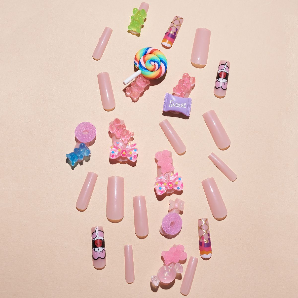 Sweet and cool candy-themed 3D gummy bear lollipop nail art, detachable finished nails