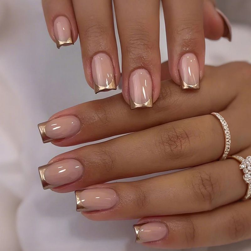 Wearable nail art, simple gold-edged French manicure, wearable nail tips, finished false nails