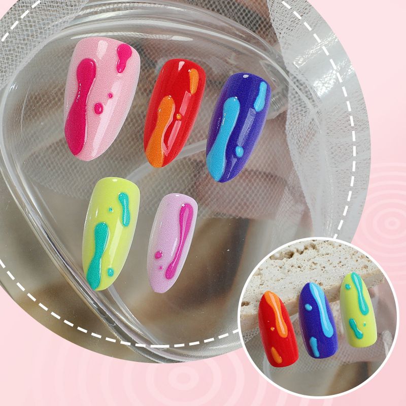 Retro-style elegant nail art with almond-shaped nail tips and dopamine-enhancing nail art.