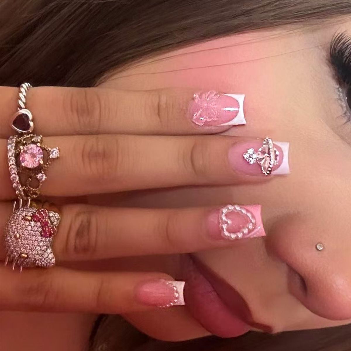 Pink Barbie y2k sweet hot girl 3D three-dimensional five-pointed star butterfly flash nail art