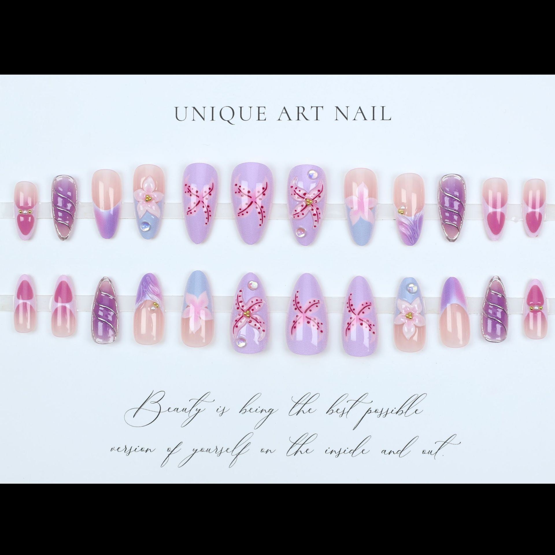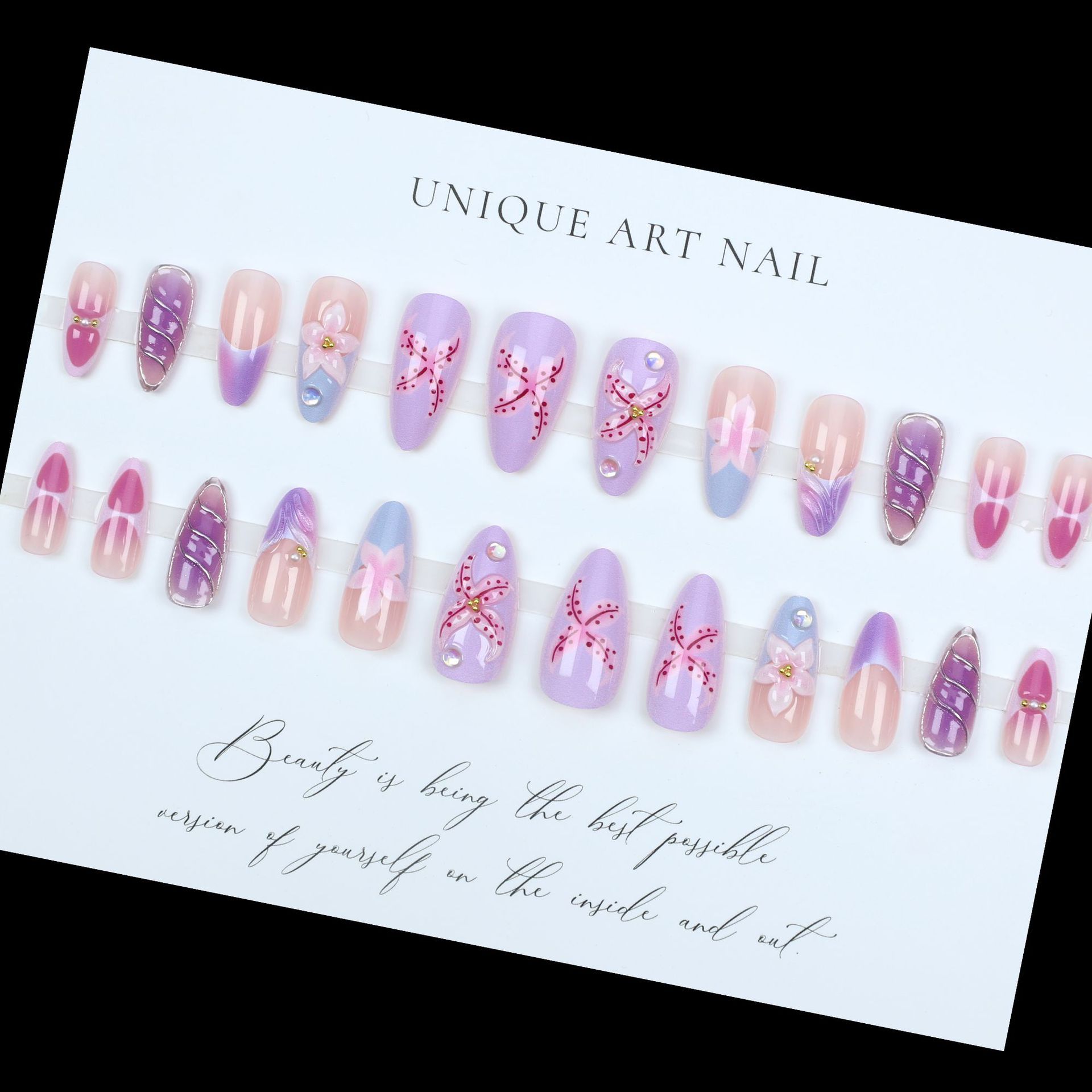 3D carved purple and pink flower dream wear nails three-dimensional flower pearl nail art fake nails finished product