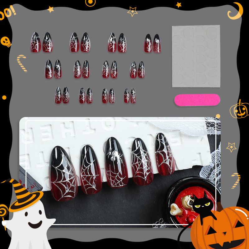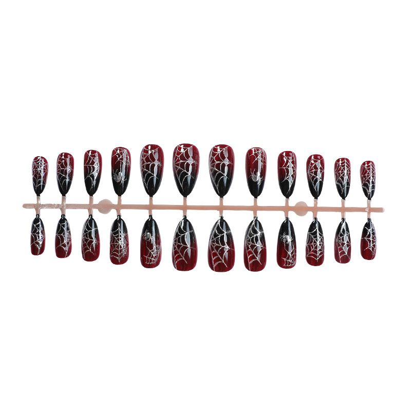 Almond gradient dark red loose powder spider web nail art wearable nails