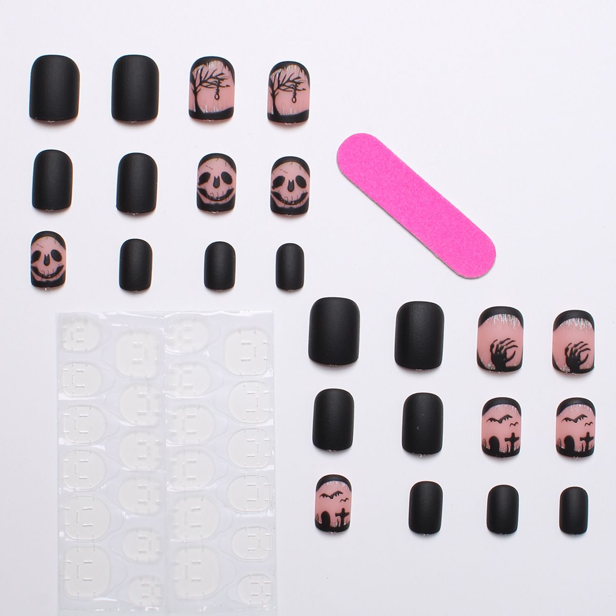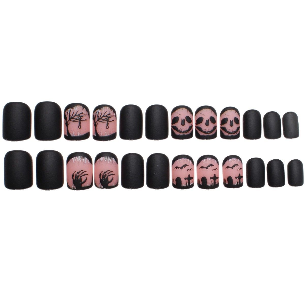 Dark Elements: Skulls, ghostly hands, tombstones, bats, and withered trees are depicted with realistic details, accurately recreating the spooky atmosphere of Halloween. Every design element is full of gothic mystery and tension.