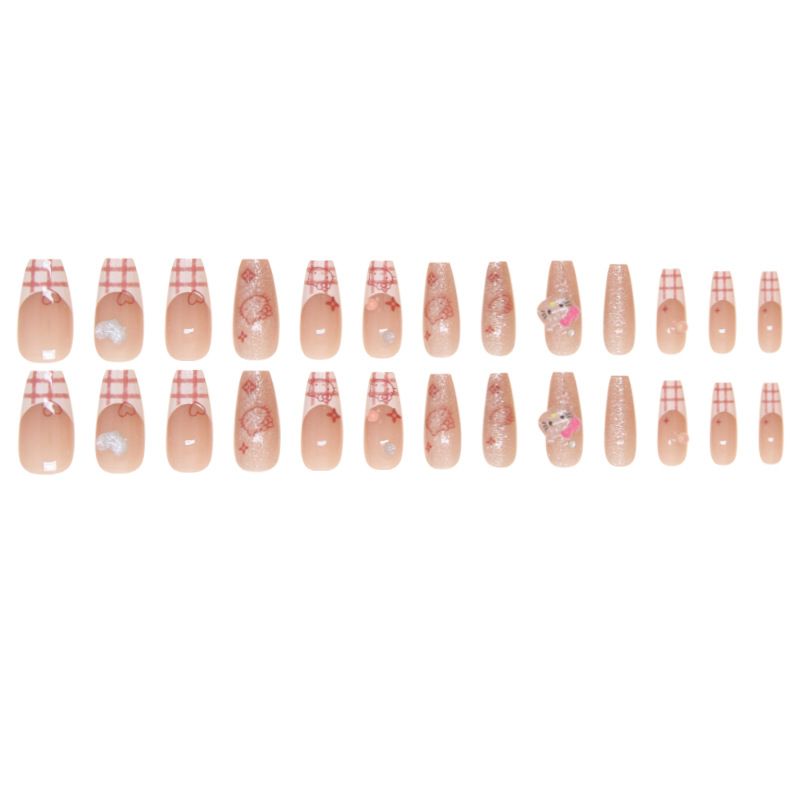 Color Scheme: Primarily nude pink and light pink tones, complemented by rhinestones, sequins, and plaid elements, creating a sweet yet sophisticated look that fulfills every girl's fantasy of dreamy colors.