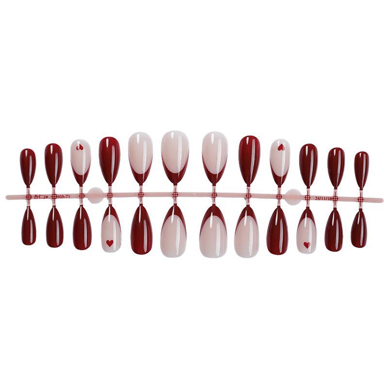 French burgundy false nails, Valentine's Day solid color nail art, handmade nail stickers.