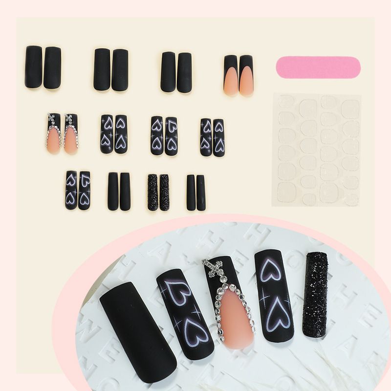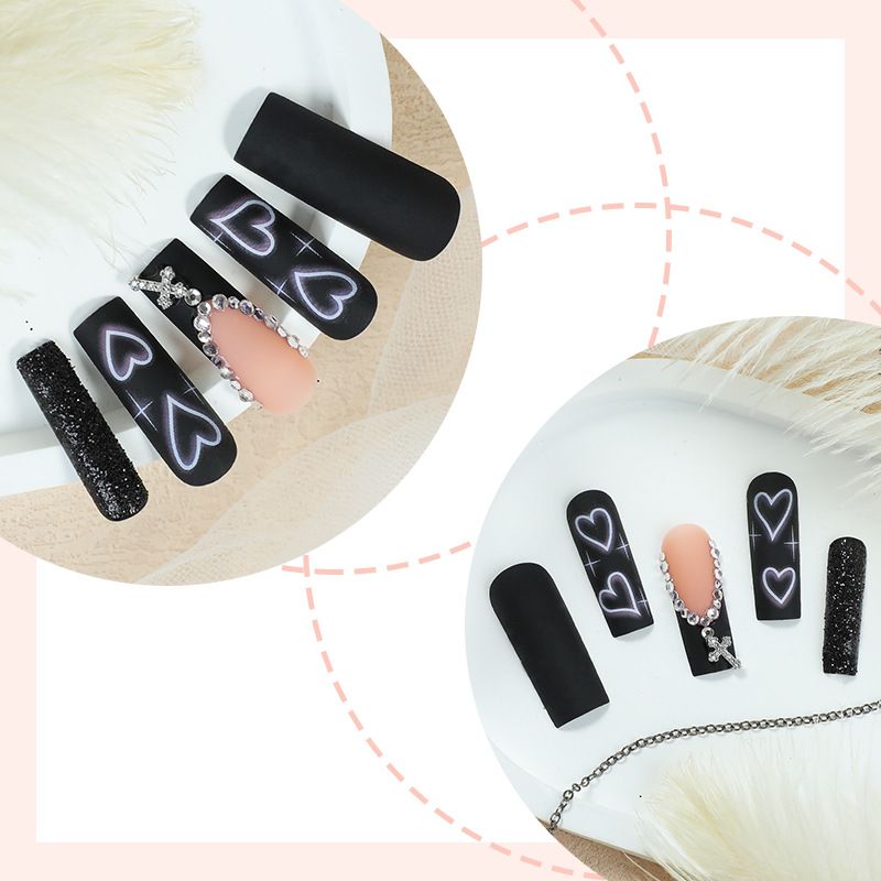 Long water pipe diamond heart 3D cross nail art with artificial nails