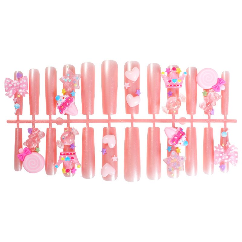 Long water pipe-shaped nail art accessories, exaggerated accessories, cute bear-shaped false nails, nail tips