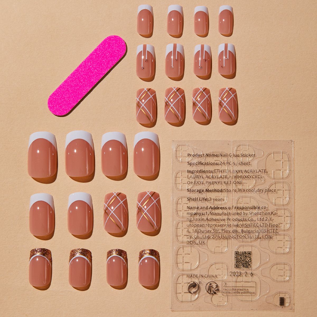 Nail stickers, white French-style glitter nail art, ready-made nail stickers, removable nail tips.
