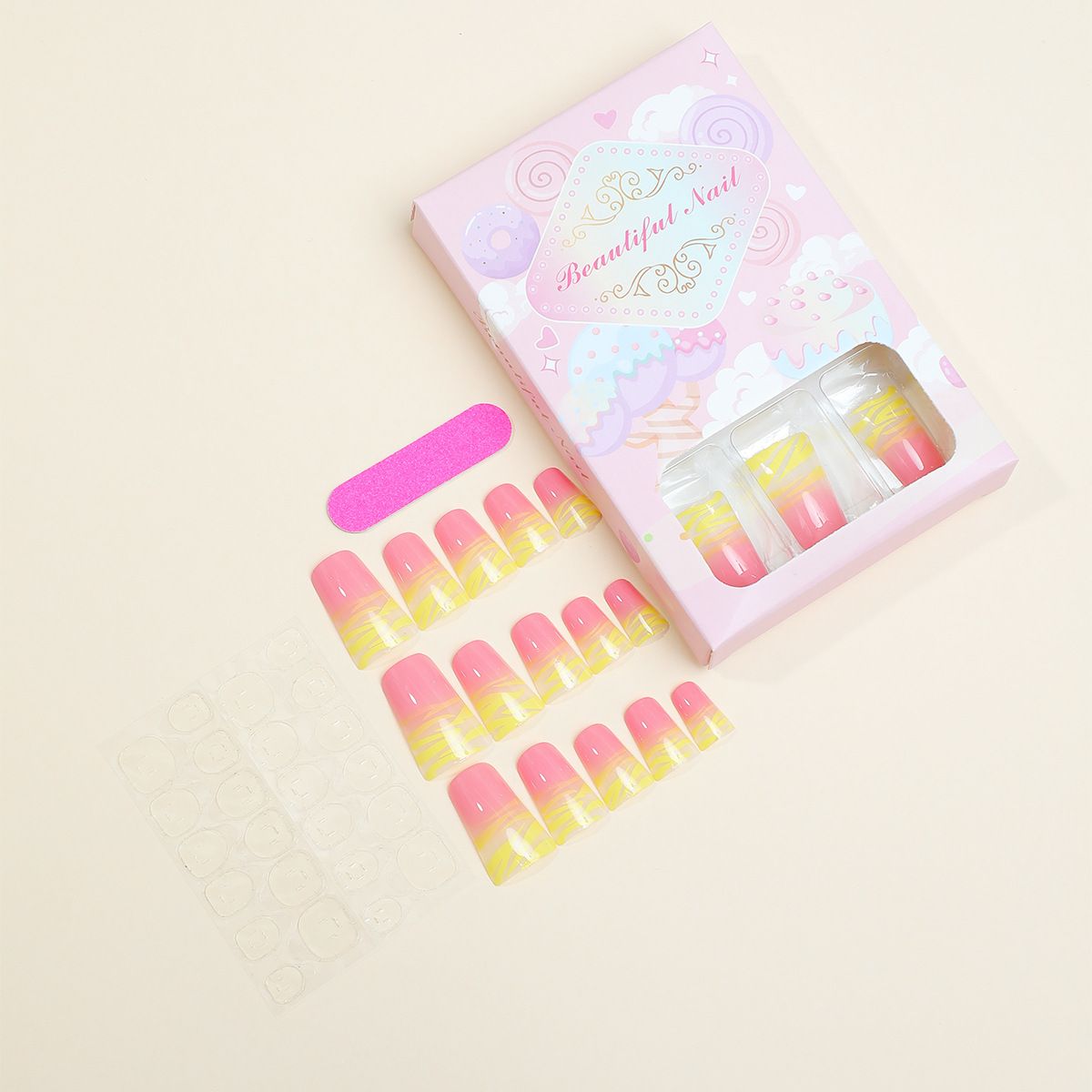 Eye - Catching Design: Features a vivid pink - to - clear gradient, accented with playful yellow swirls. This design is on - trend, drawing inspiration from retro neon aesthetics and modern nail art trends.