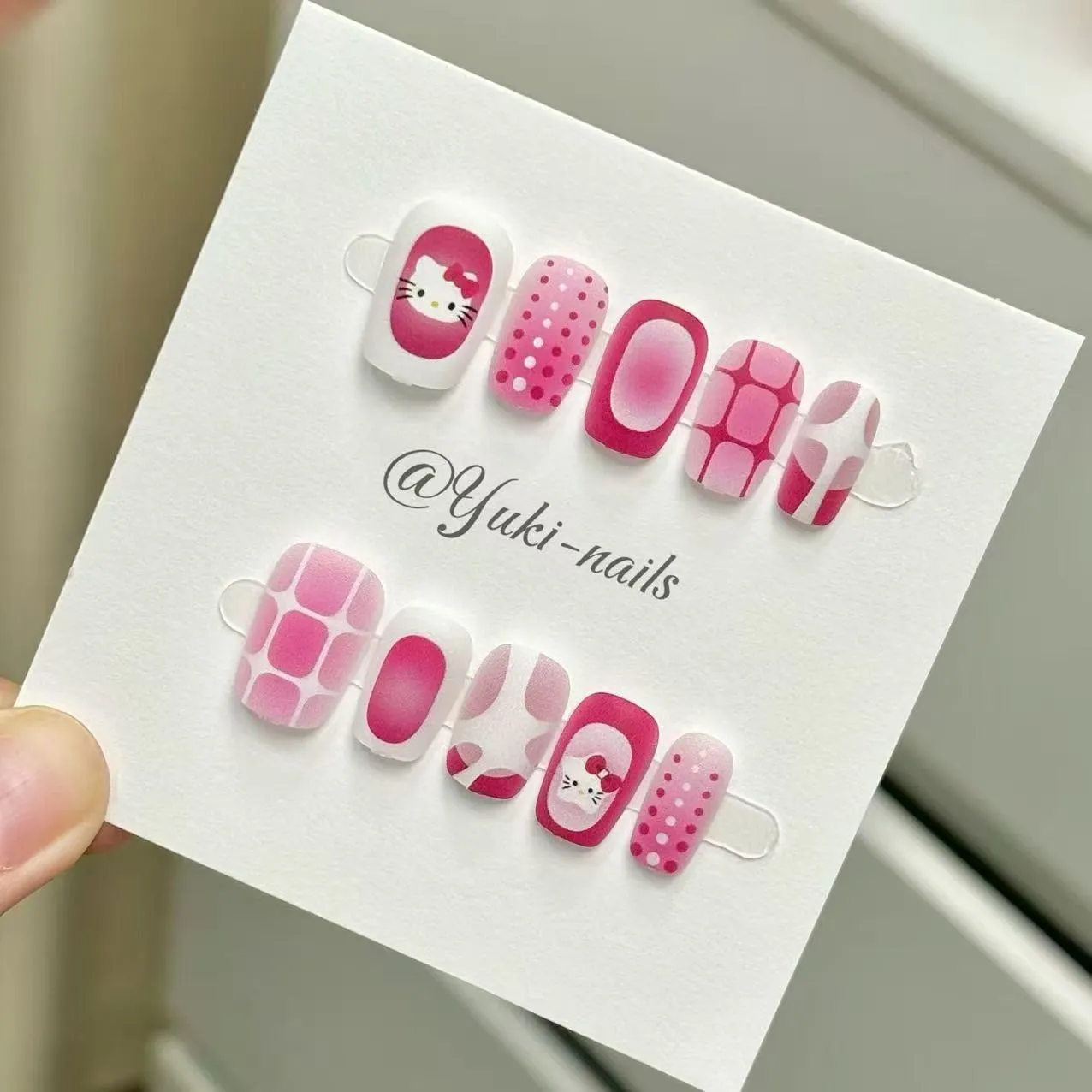 Designed with a charming Hello Kitty motif and a lovely pink color scheme, they feature various patterns like polka dots and grid designs that add a playful touch. These ready - to - wear press - on nails are ideal for women and girls who want to add some fun to their manicure.