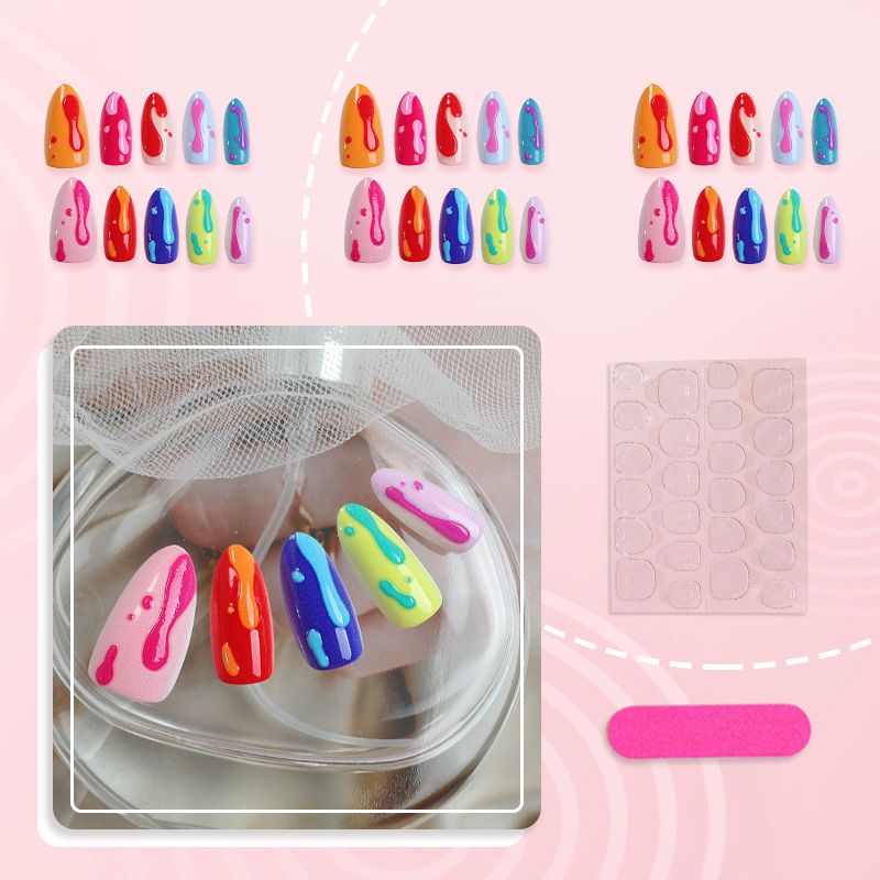 Step into the world of avant-garde nail fashion with our 3D Drip Art Colorful Stiletto Press-On Nails. Featuring bold, fluid 3D drip designs in a vibrant spectrum of hues, these nails are a canvas of abstract art, perfect for those who dare to stand out at festivals, parties, or as a daily statement of creative style.