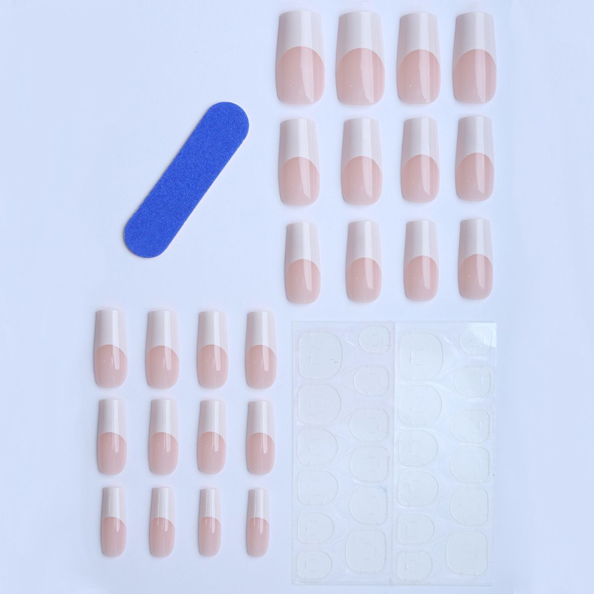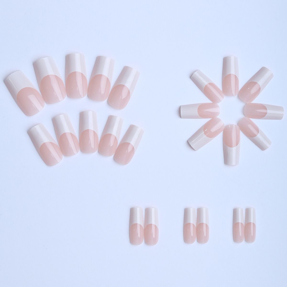 Simple square-shaped white French-edged false nails, ready-made nail art stickers, detachable.
