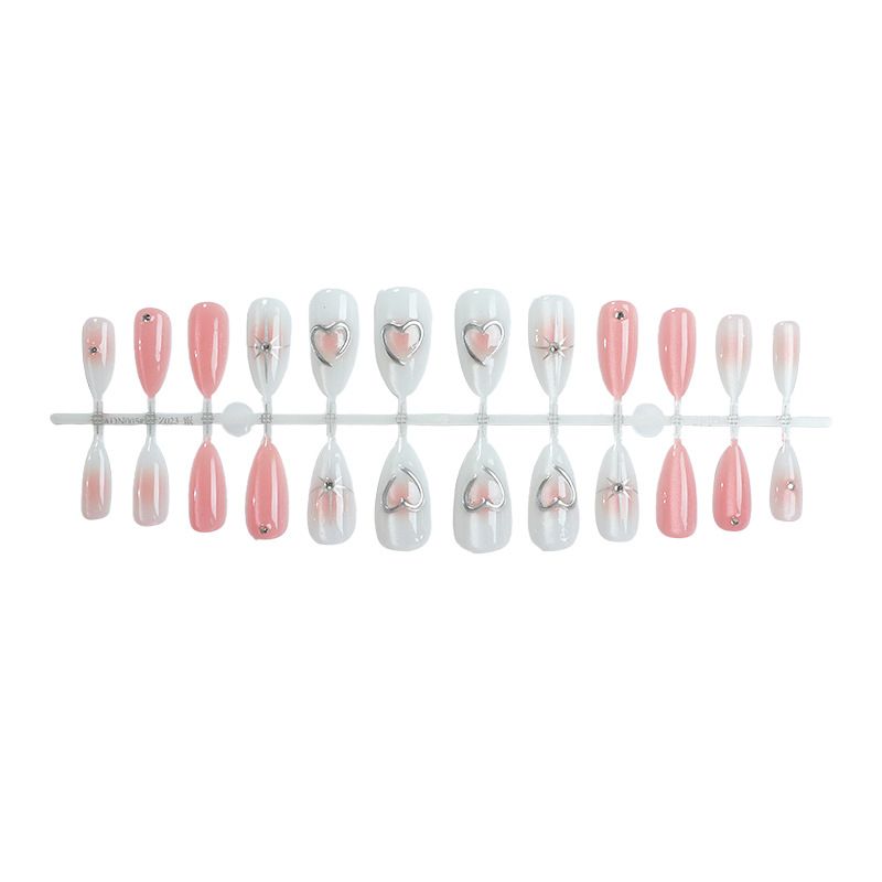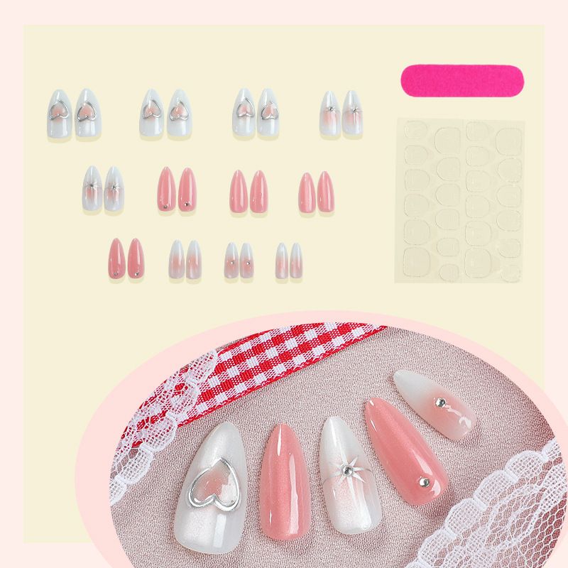 猫眼爱心穿戴甲24片杏仁型透亮猫眼星星爱心腮红甜美风美甲片显白