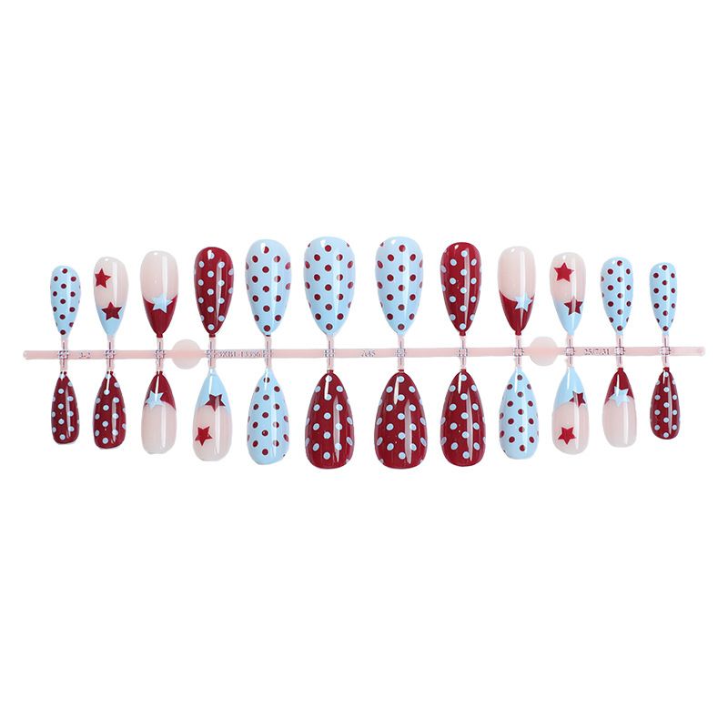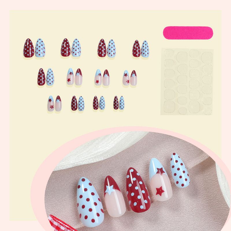 Almond nail French edge red polka dot five-pointed star nail art short wearable nails