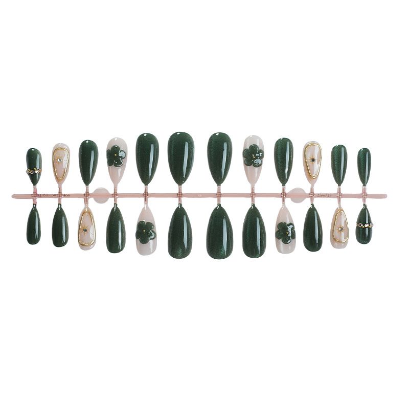 Cat eye wear nails almond shape dark green irregular lines nail art stickers high-end false nails