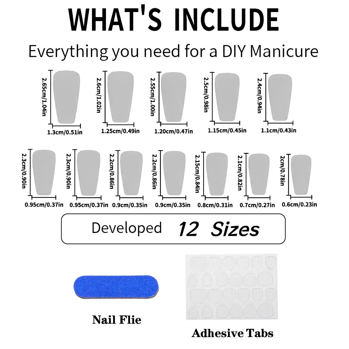 Choose a short, squared nail shape for a perfect fit, keeping the nail tip length between 1-1.5cm. This retains the contouring benefits of a squared nail shape, elongating the fingertips without compromising daily activities like typing or housework. The rounded edges eliminate sharp edges, providing a comfortable, effortless fit, perfect for everyone from students to professionals.
