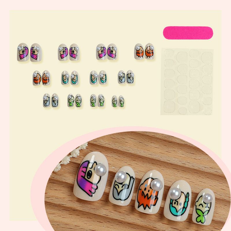 More importantly, thanks to its high-quality materials and meticulous craftsmanship, the cartoon pattern is clear and fade-resistant, and the pearl embellishments are durable and won't fall off. The short nail shape is compatible with most hand shapes, making it a perfect match for both yellow and fair skin types, satisfying your triple needs for aesthetic appeal, quality, and everyday wear.