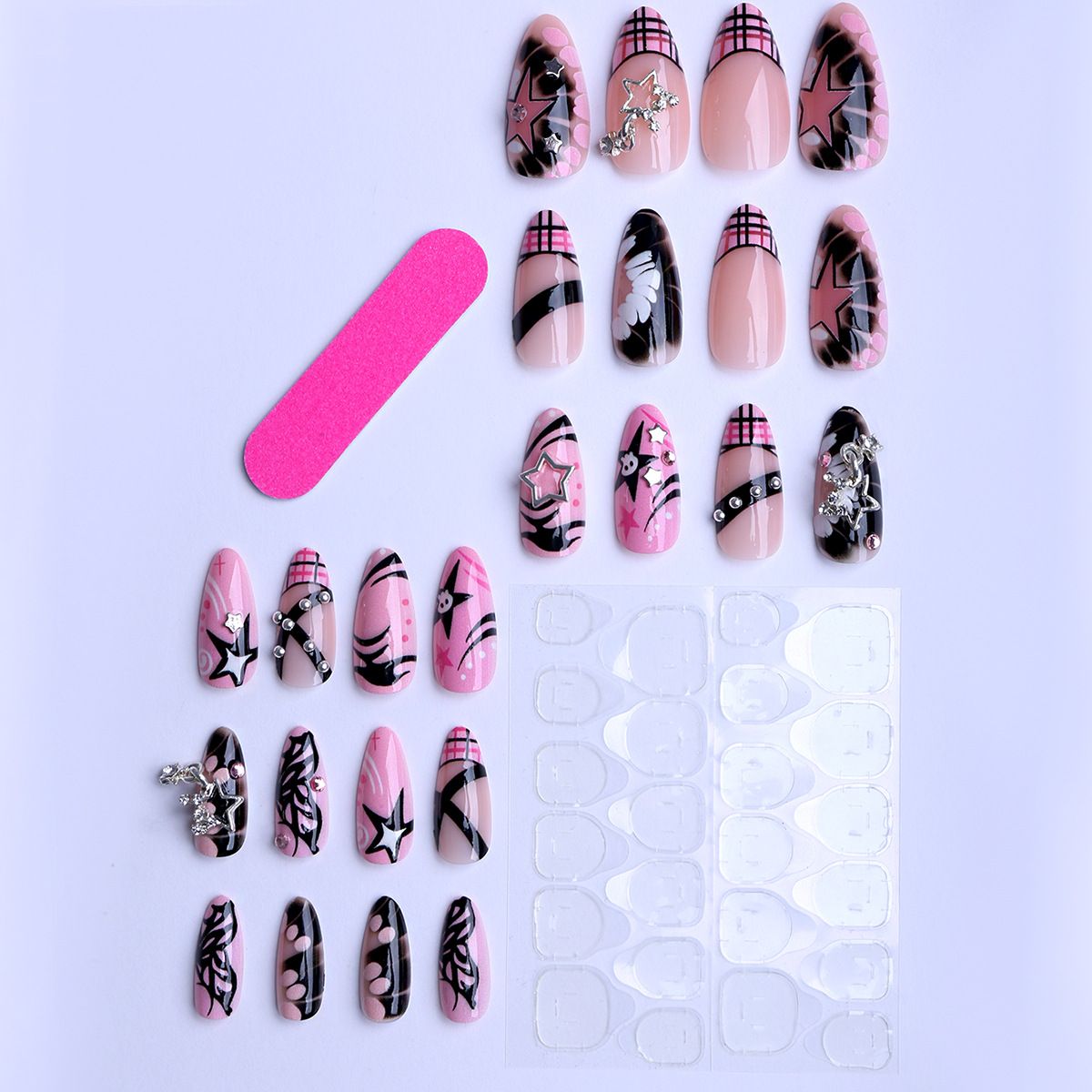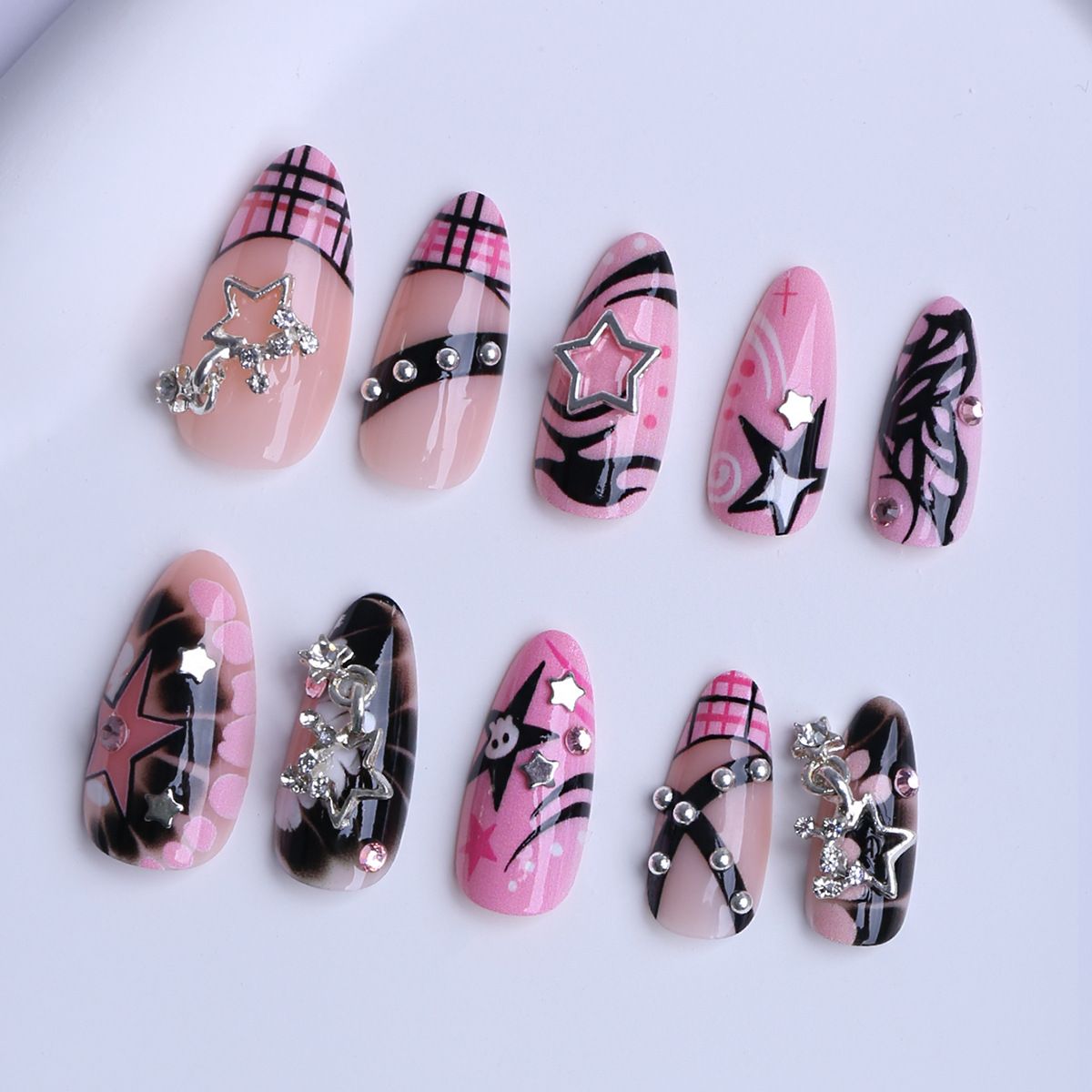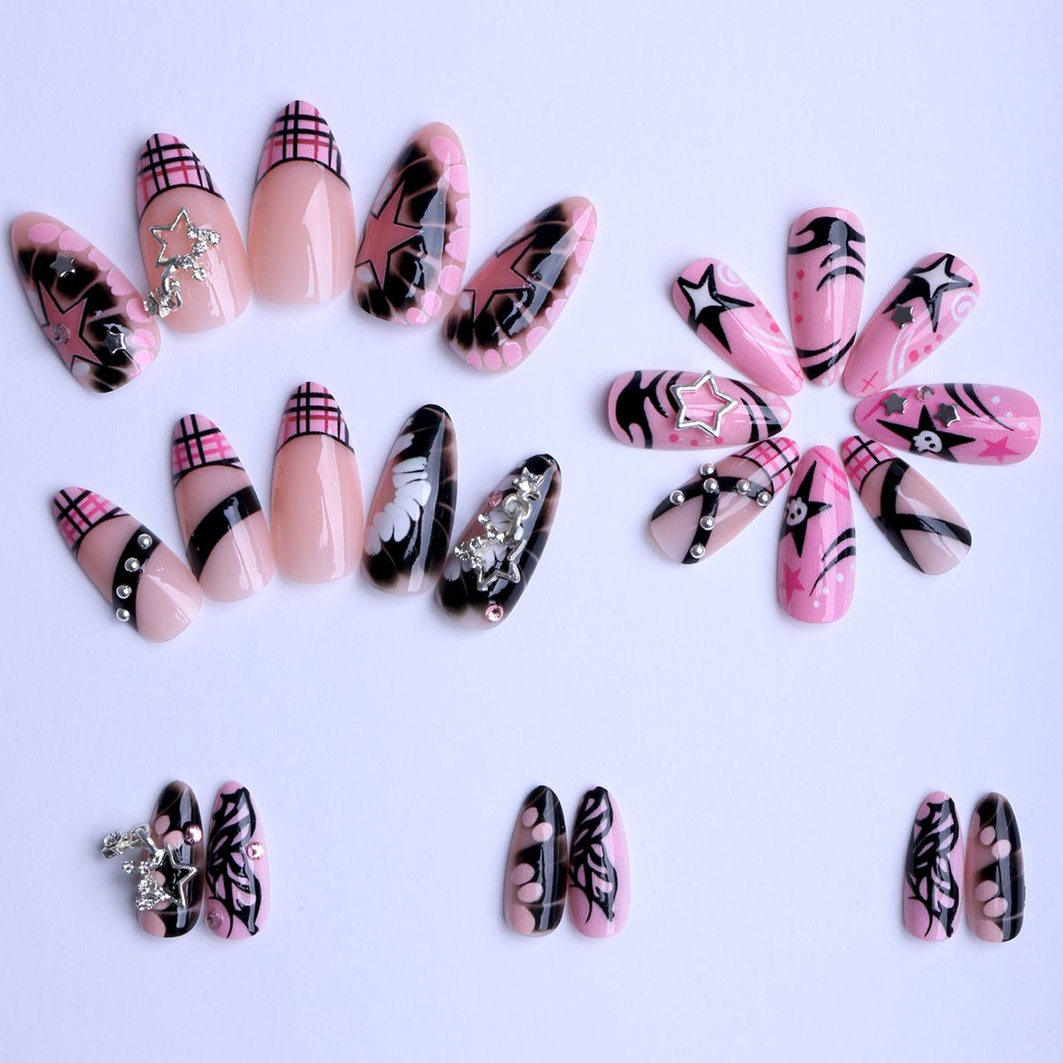 Eschewing the flimsiness of flat prints, the star and butterfly elements are crafted using a 3D embossed technique. The star's sharp corners and tangible raised texture create a cool aura. The butterfly's wings are detailed, creating a three-dimensional shape that appears poised to take flight at any moment, creating a dynamic and delicate look. The two elements are staggered across the nail tips. Some feature a five-pointed star as the focal point, others a butterfly, and still others cleverly interweave both, giving each nail tip a unique sense of design and avoiding uniformity.