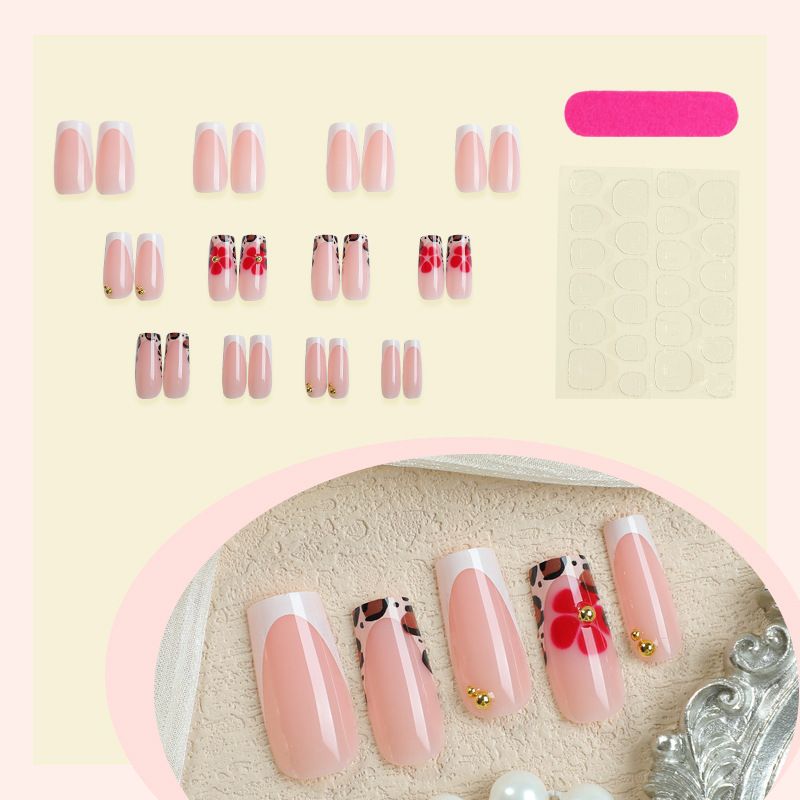 - Sweet & Edgy Fusion Design: The unique combination of wild leopard print, soft flower motifs, and shimmering gold beads creates a one-of-a-kind sweet-edgy aesthetic. Paired with the trendy medium pipe shape, it balances femininity and boldness, catering to those who love versatile, eye-catching nail art.